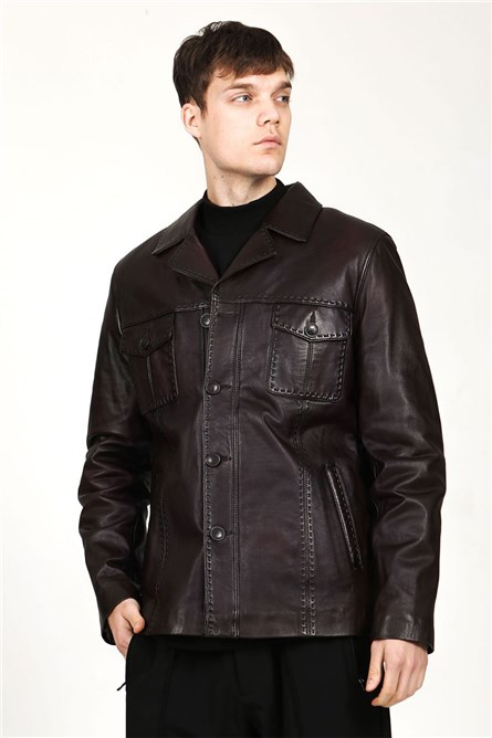 Giacca Uomo vera pelle E-1024 - Bordeaux #317624